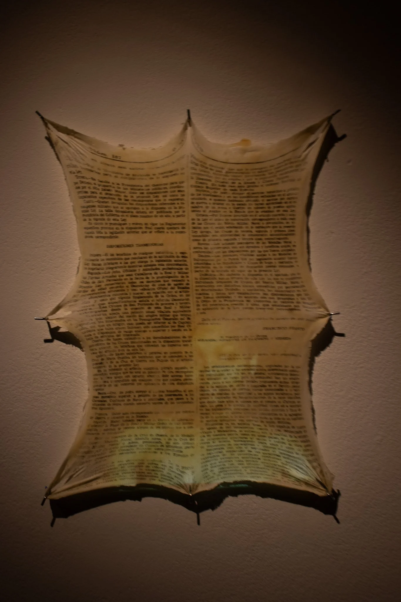 Close up of THISISWHERETHEYGOTOLIVEDIE, latex and video projection, 2025